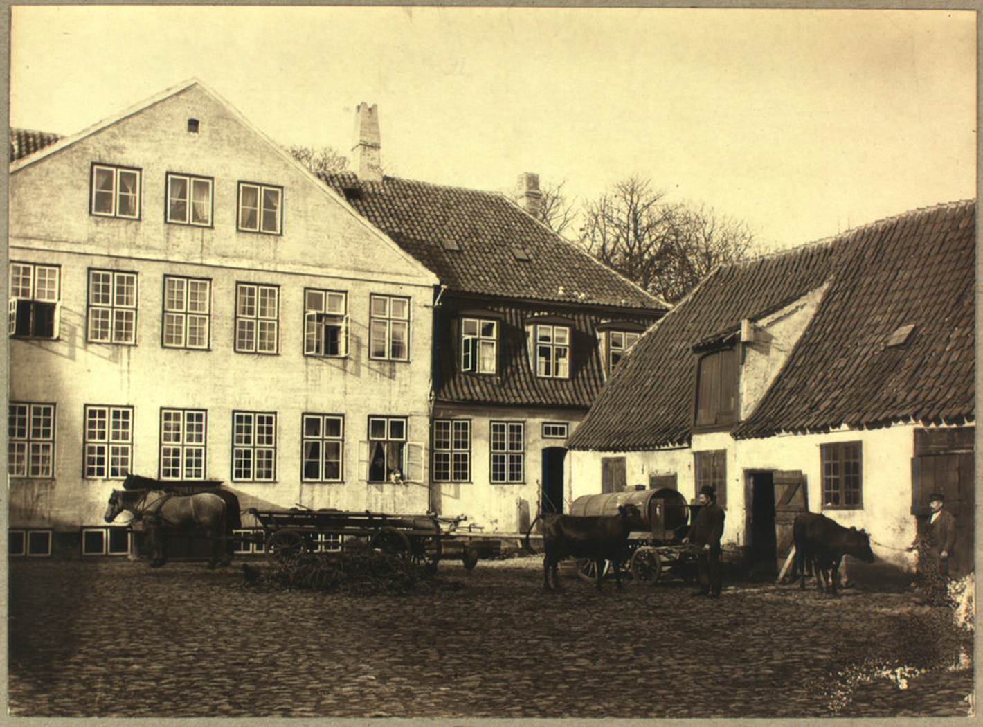 Landstedet St. Thomas ca. 1880. Landstedet har lagt navn til St. Thomas Plads, men bygningen eksisterer ikke mere og er den dag i dag blevet erstattet af et højere etagebyggeri