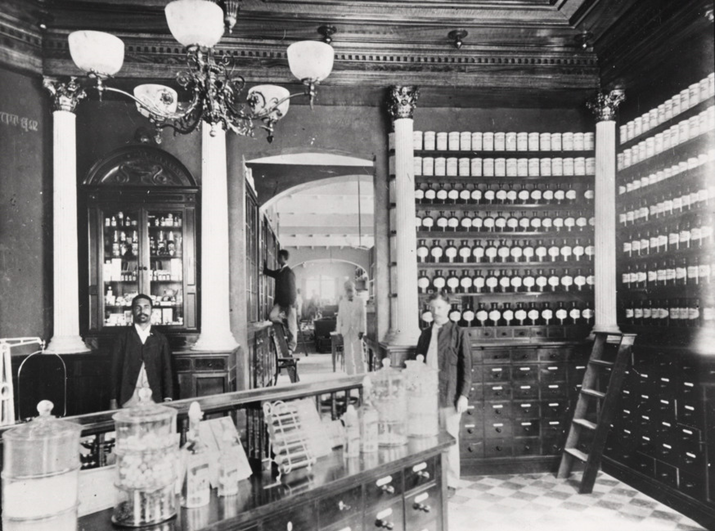 Riises apotek i Charlotte Amalie på St. Thomas (Det Kongelige Biblioteks billedarkiv)