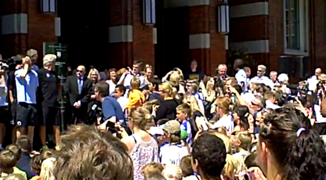 De danske fodboldmestre fra FC København fejres på pladsen foran Frederiksberg Rådhus 28. juni 2011. Borgmester Jørgen Glenthøj holder hyldesttalen for spillerne. Klippet varer 4.13 min.