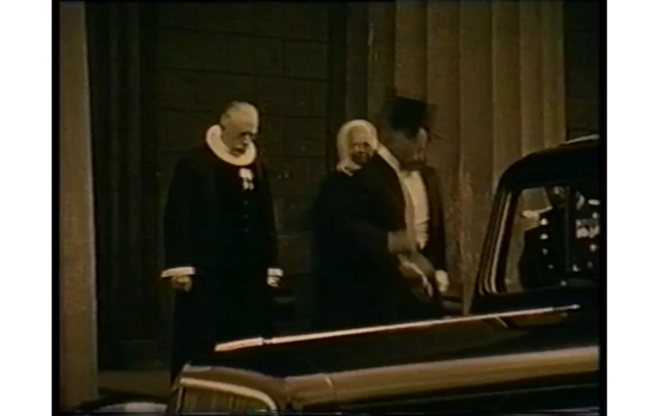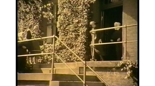 Dronning Alexandrine besøger Diakonissestiftelsen på Peter Bangs Vej i anledning af 75 års jubilæet i 1938. Efter at have drukket the med søstrene, fortsætter arrangementet i Diakonissestiftelsens have. Klippet varer 0.53 min.