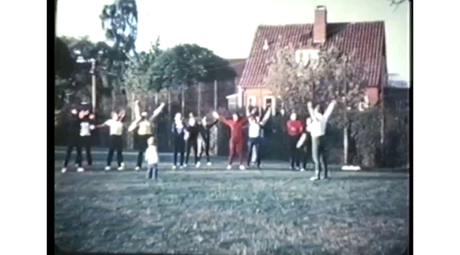 Formen holdes ved lige på Frederiksberg Kommunes Fortsættelseskursus (FKFK) i 1975. Kurset blev oprettet i 1900 og tilbød fra starten aften- og ungdomsskoleundervisning i almindelige skolefag og efterhånden i et stadig større antal praktiske fag. Undervisningen foregik på kommunens skoler. Fra 1927 deltes kurset i to afdelinger: en ungdomsskole og en aftenskole. Fra 1962 oprettedes desuden kurser til teknisk og udvidet teknisk forberedelseseksamen samt senere den statskontrollerede prøve efter 9. og 10. klasse. Fra 1975 blev HF-enkeltfagskurserne lagt under FKFK og sammenlagt med den øvrige prøveforberedende undervisning i afdelingen: Frederiksberg Forberedelseskursus. Ved nedlæggelsen af FKFK i 1978 udskiltes kursets virksomhedsområder i selvstændige institutioner: Frederiksberg Forberedelseskursus (det senere Frederiksberg VUC), Frederiksberg Kommunes Ungdomsskole samt Frederiksberg Aftenskole. Klippet varer 1.20 min. aftenskole, fkfk, idræt, motion, spydkast, tema:sport og fritid, ungdomsskole, år:1975