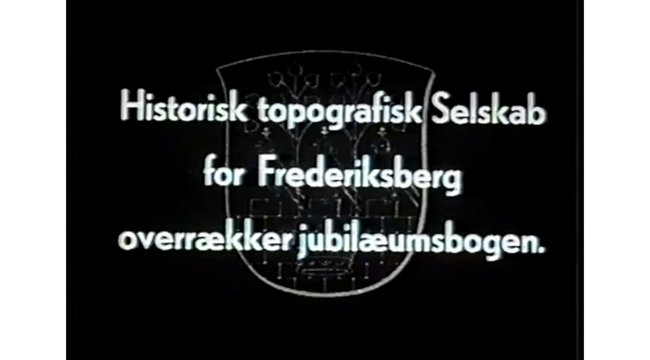 Repræsentanter for Historisk-Topografisk Selskab for Frederiksberg overrækker Mogens Lebechs "Frederiksberg gennem 300 Aar 1651-1951", til borgmester Arne Stæhr Johansen ved en reception på det gamle rådhus i anledning af Frederiksbergs 300 års jubilæum i 1951. Historisk-Topografisk Selskab holdt indstiftende møde den 3. marts 1944 og konstituerende generalforsamling den 21. april 1944. Selskabets formål er at bevare Frederiksbergs historiske minder og udbrede interessen og kendskabet til byen og dens historie. Selskabet står bag udgivelsen af den historiske årbog "Frederiksberg gennem tiderne" og halvårsskriftet "Frederiksberg'eren". Uden lyd.