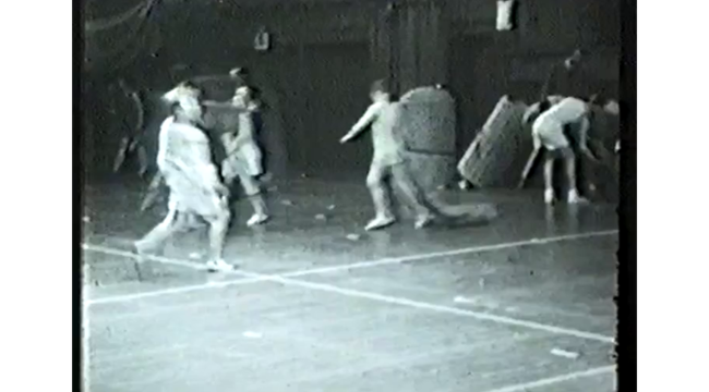 Frederiksbergske skoleelever fremviser deres gymnastiske evner ved skolernes gymnastikstævne i KB-Hallen april 1950.