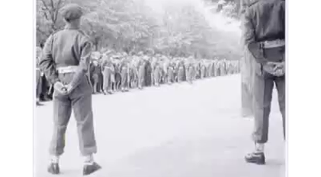 Ved en ceremoni på Frederiksberg Allé 21. maj 1945 besøgte repræsentanter fra Royal Air Force området omkring Den franske Skole. Den engelske Charge D´affaires Rodney Gallop talte for de mange fremmødte. Efter Gallops tale nedlagde den engelske Vice-Marshall Basil Embry en stor blomsterdekoration på ruinerne og gik derefter rundt og hilste på nonnerne og forældrene til de omkomne børn. Mange trykkede hans hånd og lod ham forstå, at de ikke bar nag, da de forstod, at der var tale om en hændelig ulykke. Efter ceremonien besøgte flyverne fra Roal Air Force de hospitaler, hvor der fortsat lå kvæstede. Filmen er stillet til rådighed af Frihedsmuseet.
