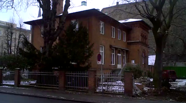 De indledende forberedelser til nedrivningen af den røde villa på hjørnet af Frederiksberg Allé og Platanvej (Frederiksberg Allé 41) gøres om morgenen 12. januar 2010.