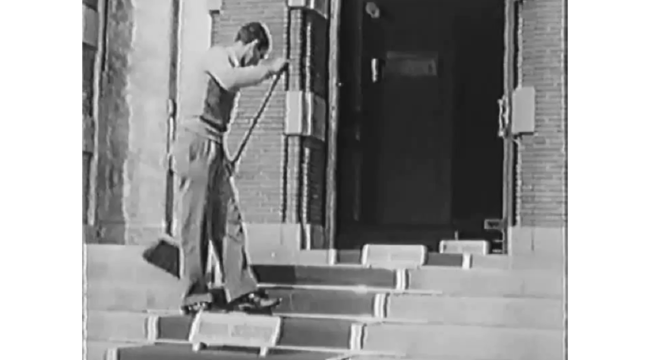 Kong Frederik 9 og Dronning Ingrid ankommer til indvielsen af Frederiksbergs nye rådhus 9. maj 1953. Borgmester Arne Stæhr Johansen og næstformand (viceborgmester) Knud Nielsen tager imod regentparret. Fra "Rådhusfilmen".