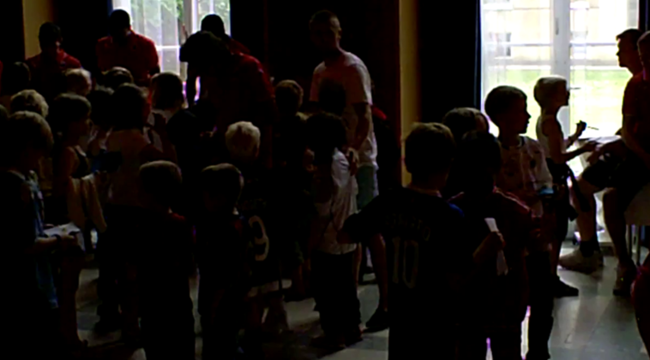 Spillerne fra FC. København skriver autografer til de mange fremmødte ved Frederiksberg Kommunes reception for de danske mestre og pokalvindere på Frederiksberg Rådhus 25. juni 2009.